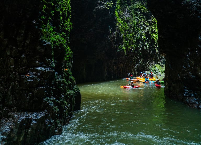 Recorrido Encanto - Palmilla Se inicia con una visita a la Cascada de El Encanto (40 m de altura), llamada “La Catedral de la Naturaleza”, uno de los principales y el más bello sitio en la región que se encuentra dentro de un espectacular cañón con paredes de más de 100 m de altura y cuando mucho 4 metros en su parte más estrecha, a la que se entra remando a contracorriente, natación en la fosa de la cascada, natación en remansos, clavados en fosa natural, nacimientos de agua, tratamiento facial con barro, emocionantes rápidos con mayor nivel de agua al juntarse los ríos Filobobos y el Alseseca.